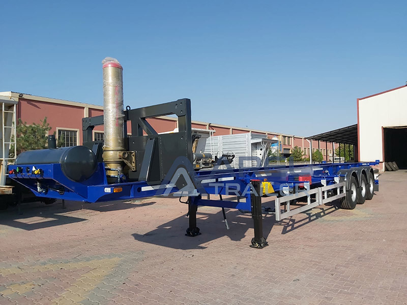Tipping container trailers, 40 FT TIPPING SKELETAL TRAILER also known as tipping or dump container trailers, are designed for transporting and unloading bulk materials such as construction debris, sand, gravel, or waste. These trailers feature a tipping mechanism that allows the container to be tilted to discharge its contents. Here are some typical specifications for tipping container trailers: