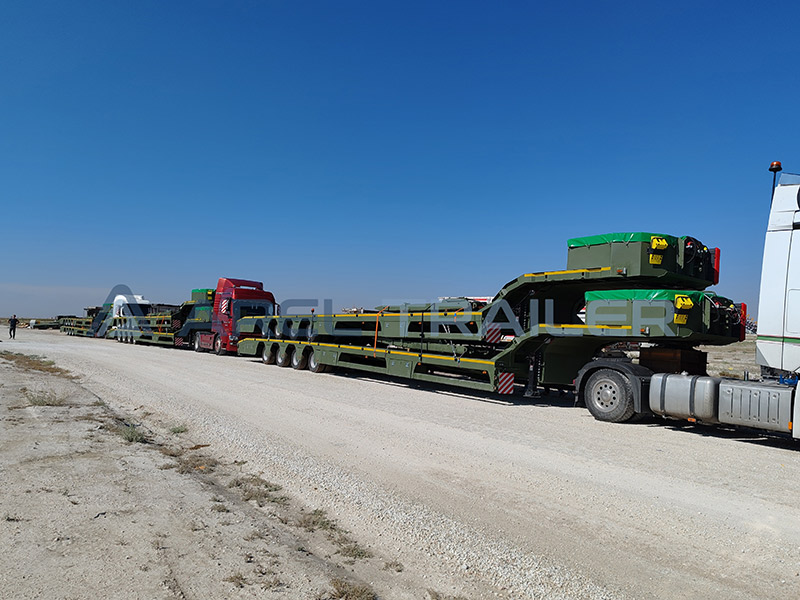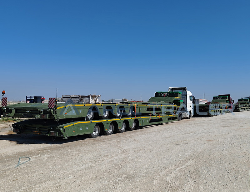 Military/Defence Lowbed semi trailers, MILITARY/DEFENCE LOWBED SEMI TRAILER are designed for transporting heavy and oversized loads; Tank carrier trailer , apc tank trailer , army semi trailer, military transport, panzer transport. They have a low ground clearance to accommodate tall loads and often feature a drop deck design to lower the center of gravity, enhancing stability during transport. Here are the typical specifications for lowbed semi trailers: